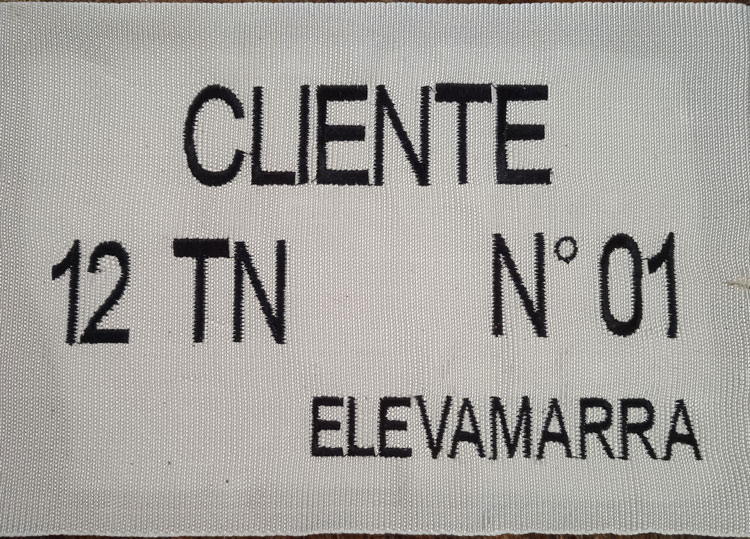Colocamos bordados según necesidades del cliente personalizando las eslingas de poliéster con su nombre y especificaciones de la eslinga y códigos de trazabilidad.